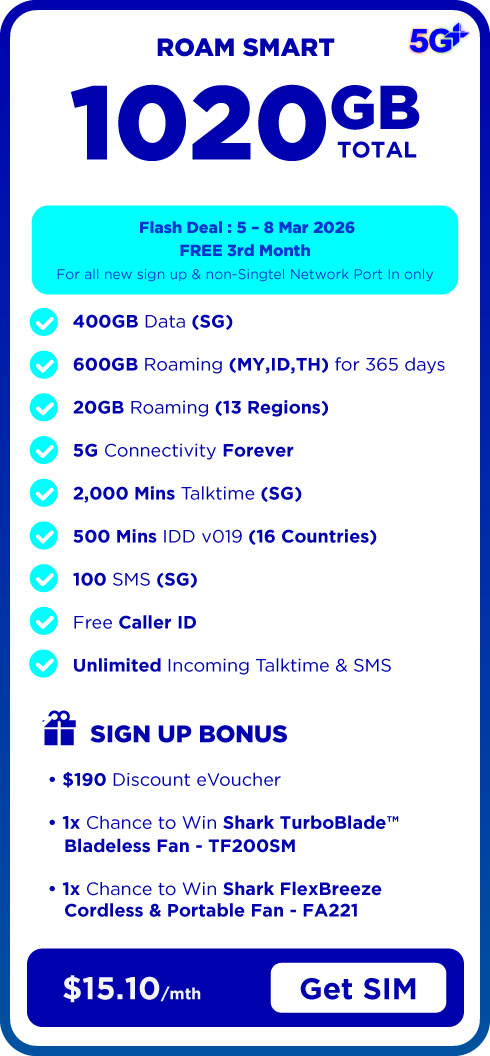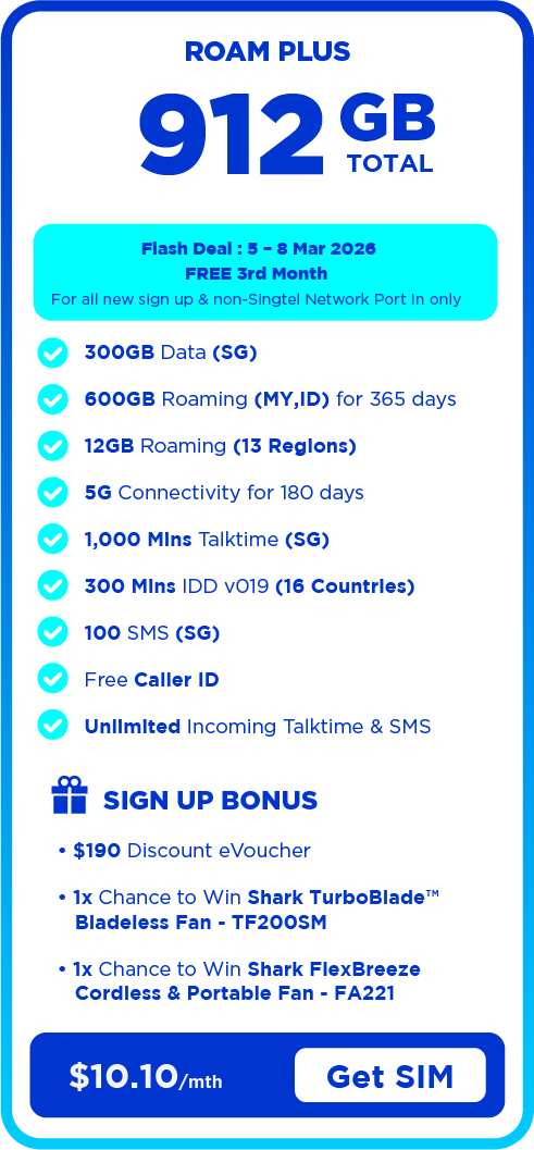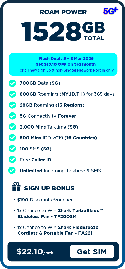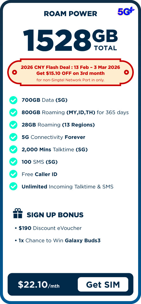 - [CNY Port in Special] All new port-in subscribers from non-Singtel providers are eligible for a one-time bill rebate of up to $15.10 in their 3rd month of subscription, subject to the specific plan selected. Refer to T&Cs.